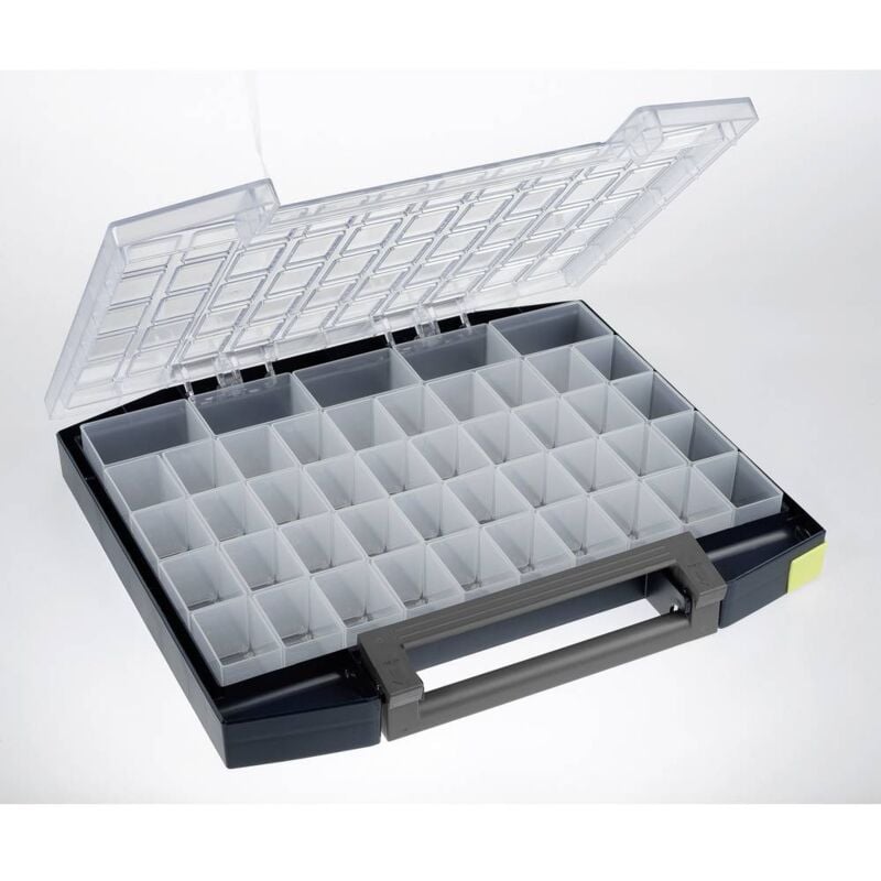 Dettagli tecnici Colore Blu Dimensione del prodotto, larghezza 421 mm Dimensione, profondità 361 mm Dimensioni (L x A x P) 421 x 55 x 361 mm Dimensioni prodotto Altezza 55 mm Materiale Polipropilene, Policarbonato Peso 1.91 kg Scomparti 45 Tipo prodotto Valigetta per minuteria Valigetta assortimento Boxxser 55 5x1 0-45 Valigetta assortimento con 45 inserti senza 40xA9-1, 5xA8-1. Incl. Maniglia per il trasporto con bloccaggio ad una mano e 3 etichette ID (giallo, verde, grigio). I sistemi a scatto nel coperchio e nel pavimento impediscono lo scivolamento del contenuto. Testo tradotto automaticamente. Incluso nella consegna null Requisiti di sistema null