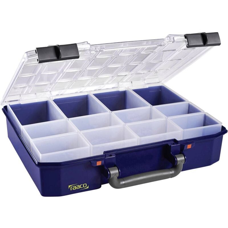 Dettagli tecnici Colore Blu Famiglia colore Blu Materiale Polipropilene, Policarbonato Peso 1.15 kg Scomparti 12 Tipo prodotto Valigetta per minuteria Valigetta assortimento carry lite 80 4x8-12 Valigetta assortimento con 12 inserti per apparecchi (8x BA8-1, 4x BA 7-1). Chiusure scorrevoli e maniglia per il trasporto incluse. I sistemi a scatto nel coperchio e nel pavimento impediscono lo scivolamento del contenuto. Testo tradotto automaticamente. Caratteristiche L'ordine è più facile, robusto e portatile: valigetta assortimento per elevate di farlo risaltare tra gli altri e chiaro. Materiali di lunga durata, resistenti agli urti e varianti particolari consentono un uso più versatile Coperchio (con Uberkippschutz) in policarbonato trasparente e corpo valigetta in polipropilene garantiscono un'elevata stabilità. In Profilo coperchio e mantenere gli inserti incl. Contenuto in posizione. Con 2 chiusure a scorrimento stabile Equipaggiato con 12 inserti in due grandezze (tipo 80 BA).