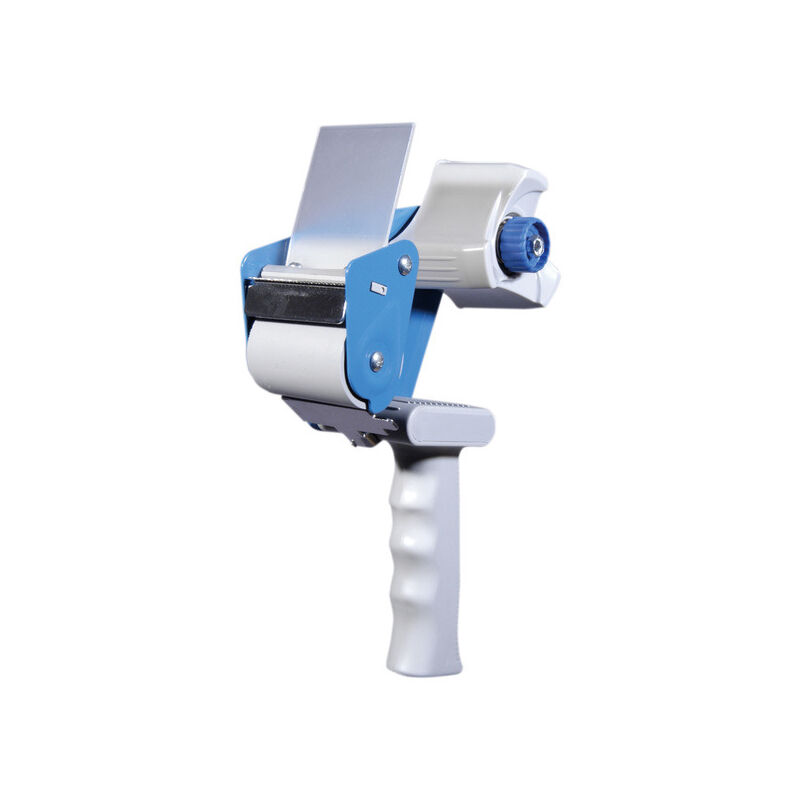 Robusto dispenser manuale per nastro da imballaggio. Per rotoli fino a 66 metri di lunghezza e 50 mm di larghezza. Questo dispenser manuale è dotato di rullo pressore e velocità di svolgimento regolabile.