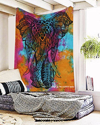 Raajsee Multi Colore arazzo da Parete Telo Cotone Elefante 140x210