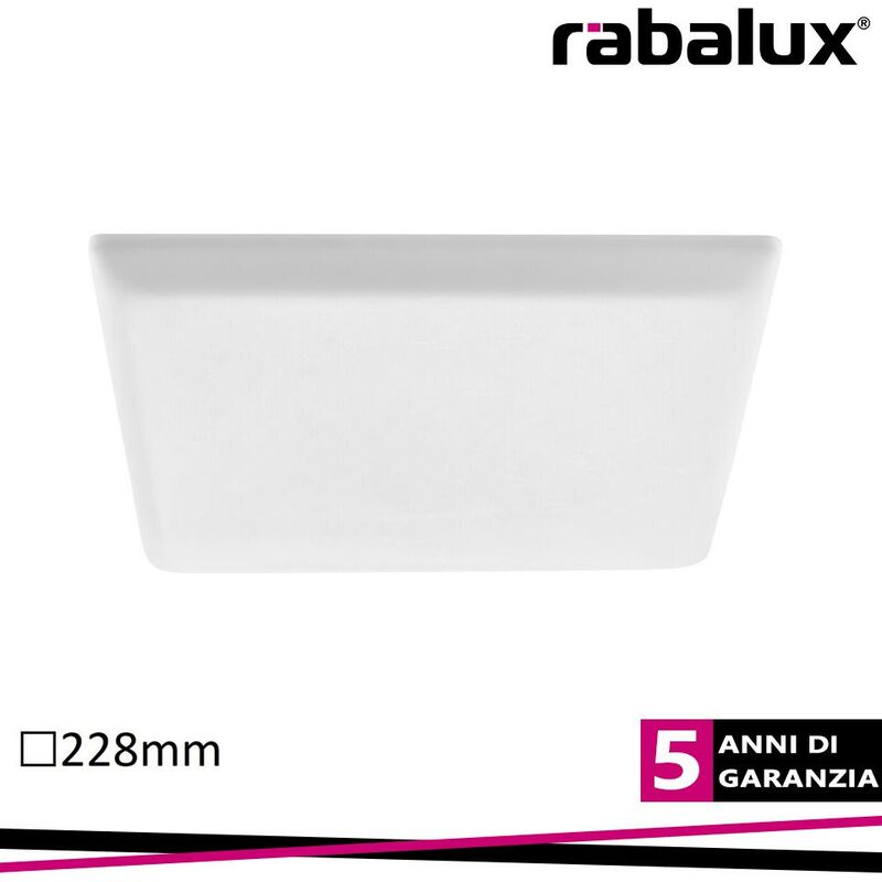 Plafoniera Oleg .Consigliamo la plafoniera Oleg a chi predilige lo stile funzionale, ma ama comunque le forme rettangolari. Il modello bianco realizzato in metallo e plastica e ha una sorgente luminosa a LED integrata. Il consumo energetico della sorgente luminosa di 24 W, la sua intensit luminosa di 2568 lumen. La temperatura di colore della lampada di 4000 K, quindi illumina il suo ambiente con una luce bianca naturale, creando cos un effetto pulito e moderno. La plafoniera da incasso Oleg la scelta perfetta per il bagno, poich la sua protezione IP65 garantisce che sia protetta dall'ingresso di polvere e spruzzi d'acqua da qualsiasi direzione. La dimensione della lampada è di 228x228 mm, la sua distanza dal soffitto è di 25 mm, la dimensione del ritaglio è di 205x205 mm. La plafoniera da incasso Oleg ha una garanzia di 5 anni.CARATTERISTICHE DEL PRODOTTO:Categoria di prodottoIlluminazione interna:Stile=Funzionale:Camera=bagno:Temperatura colore=bianco naturale:Flusso luminoso