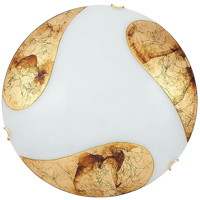 Bianco / oro soffitto Tipo di luce in vetro metallo oro Ø40cm Dimensioni in mm: Diametro: 400 peso in kg: 1, 64 lampada inclusa: NO tipo di lampadina / versione: E27 informazioni sulla lampada / potenza massima: E27 2x 40W MAX classe (a ++ a e): a ++ - e di riduzione luminosità: YES protezione: IP20 case: metallo materiale diffusore in vetro: vetro Colore: bianco / oro