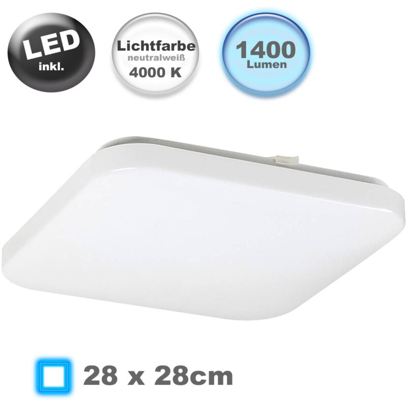 Soffitto del LED Rob plastica bianca B: 28 cm H: 6cm Colore neutro luce bianca, 4000K Moderna luce di soffitto quadrata per la vostra zona giorno illuminazione ad alta - 1400 lumen illuminare la vostra stanza custodia in metallo nei colori bianco, schermo nbsp in materiale plastico bianco già e, in tecnologia a LED a risparmio energetico - Risparmi fino a 80 i costi di energia elettrica% dimensioni in mm: lunghezza: 280 larghezza: 280, altezza: 60mm lampada inclusa: YES informazioni sulla lampada / potenza massima: LED 20W colore della luce in gradi Kelvin: 4000 colore chiaro: Neutral White | flusso luminoso: 1400 classe (a ++ a e): a di riduzione luminosità: NO protezione: IP 20 materiale diffusore in vetro: plastica Colore: bianco