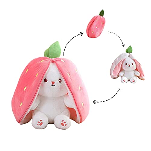 DESIGN UNICO: questo peluche può essere una fragola/carota o un coniglio dalle orecchie lunghe. Basta aprire la cerniera e il coniglio apparirà. il peloso animale di peluche coniglio ha un viso adorabile e arti morbidi. Sarà il vostro migliore amico e vi porterà sempre felicità.