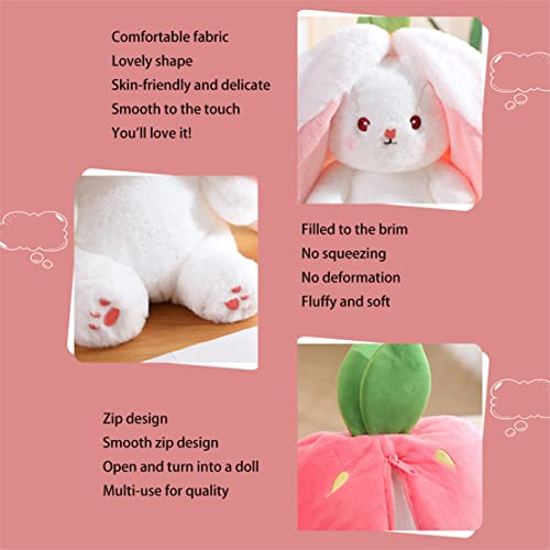 Rabbit Muppet Toys, Strawberry/carrot Bunny Plush, Zipper Reversible Bunny Plush Animal Easter Pink Bunny Kids Toy Gift, Rabbit Muppet Toys Reversible Floppy Ear Bunny Plush Pillow (Strawberry)