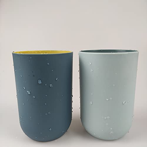 RabyLeo Tazza da 297,7 g, infrangibile, riutilizzabile, set di 2 colori, bicchiere da spazzolino in plastica, 300 ml, lavabile in lavastoviglie (azzurro e blu marino)