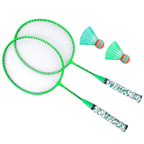 Set di racchette da badminton per bambini da 1 paio, set di racchette da badminton da gioco per bambini indoor outdoor con 2 palline(Verde fluorescente)