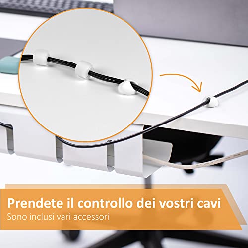 Tenga in ordine il Suo ufficio: Un posto di lavoro in ordine La rende più produttivo e concentrato. L'organizzazione dei cavi è super FACILE con la canalina passacavi per la scrivania di Stilemo che fa in modo che Lei possa sistemare cavi, prese e fili nel cable management per la scrivania.