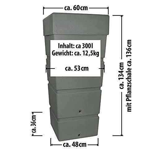 Raccoglitore d'acqua piovana angolare Nizza, 300 l, a prova di gelo, moderna cisterna per acqua piovana con robusto coperchio che funge da fioriera
