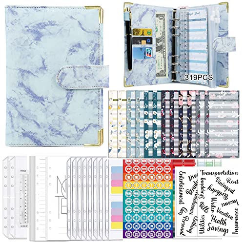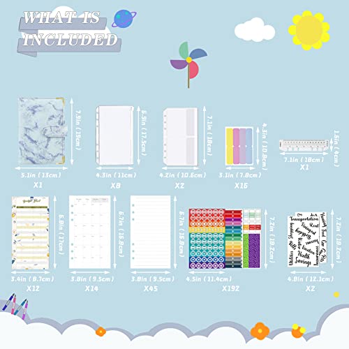 Raccoglitore ad Anelli A6 Ambolio 90PCS Raccoglitore di Bilancio A6 Raccoglitore Notebook Quaderno Raccoglitore Portadocumenti per Budget di Contanti Organizzatore di Buste(Blu A)