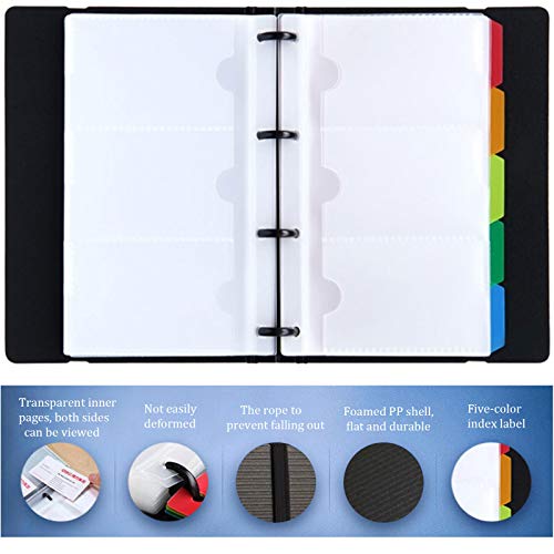 Raccoglitore ad Anelli Per Biglietti da Visita Porta Biglietti da Visita Organizzatore di Carte con Etichetta Indice a Cinque Colori, Capacità di 180 Carte Ideale per Ufficio E Studio, Nero