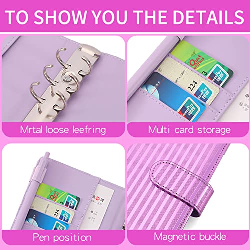 Raccoglitore ad 6 Anelli,Raccoglitore Notebook A6,Raccoglitore ad Anelli A6,Raccoglitore di Bilancio,Portadocumenti in Pelle A6 PU,12 Fogli di Budget,per Budget di Bilancio Organizzatore,Rosa