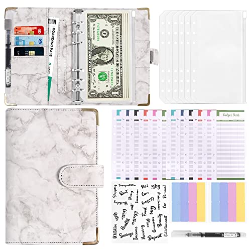 Raccoglitore ad Anelli A6: cartella in pelle A6, 12 buste budget denaro, 12 tabelle budget, 1 penna, 2 etichette adesive, 4 note adesive a colori. La cartella budget ti aiuta a gestire i tuoi soldi e raggiungere i tuoi obiettivi di budget