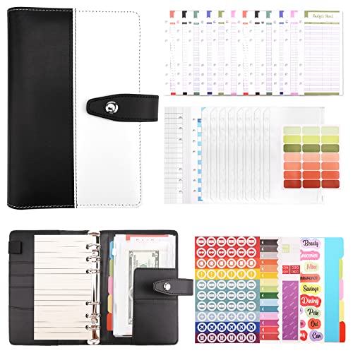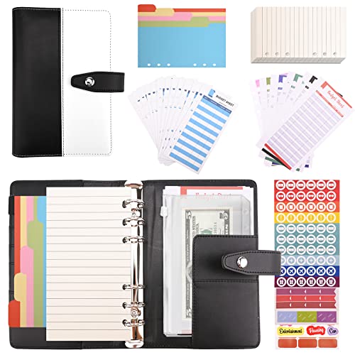 Raccoglitore di Bilancio,63 Pz Raccoglitore Notebook A6 Raccoglitore A6 Anelli con 12 Trasparente Sacchetti Cerniera Fogli di Budget,Etichette Adesive,Divisori per Raccoglitori per Budget di Contanti