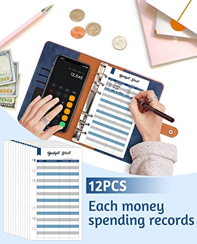 Raccoglitore per budget A6 PU, raccoglitore per budget con 12 buste, porta documenti multifunzionale con 12 tasche buste per budget, adesivi per buste con busta per pianificatore di budget(blu)
