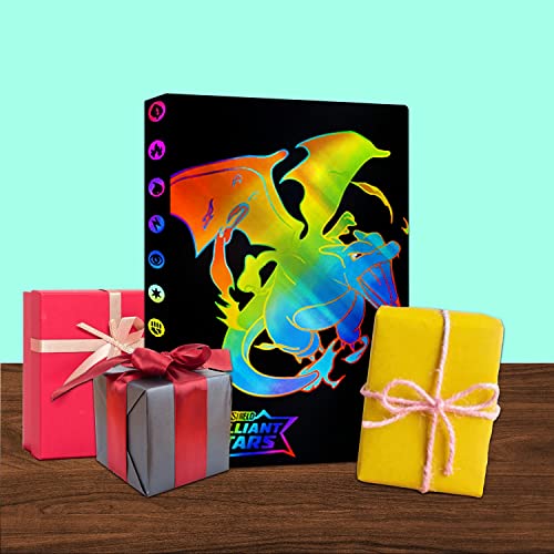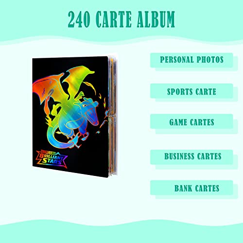Raccoglitore Carte, Album di Carte con Effetto Laser Libro Album Fotografico, 4 Tasche per Pagina 30 Pagine e Può Contenere 240 Carte Porta Carte Album(Laser-Drago)