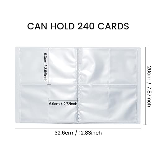 【Capacità dell'album di carte】 Dimensioni del prodotto: 32 cm x 20 cm. 4 pannelli per pagina, totale 30 pagine, spazio per 240 carte. (1 posto può contenere 2 carte, il posto migliore schiena contro schiena)