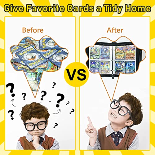 Raccoglitore Carte da Collezione Album per Carte con 50 Pagine 400 Carte, Album Carte Compatibile con Cerniera, Libro Porta Carte da Collezione di Giochi per Bambini (giallo)