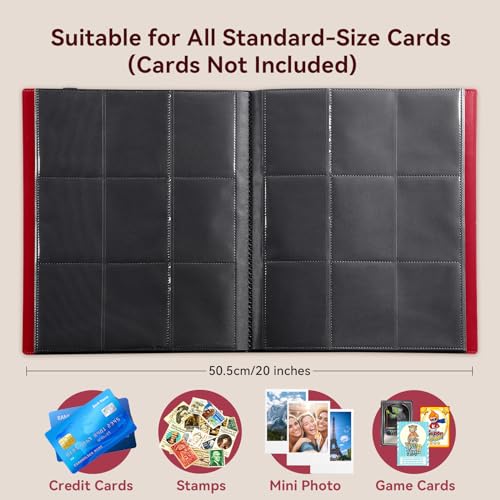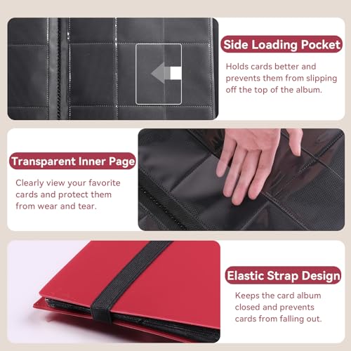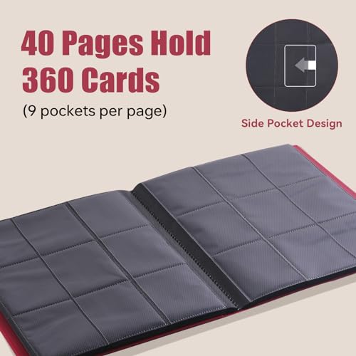 Raccoglitore Carte Rosso, Album Carte 360 Carte con Cinturino Elastico, Porta Carte 9 Tasche Laterali con Caricamento - 40 Pagine, Carte Raccoglitore per Carte da Gioco&Bancarie/Mini Foto ecc.