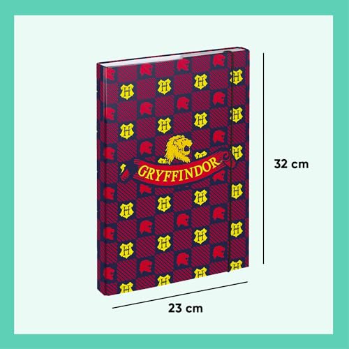 Raccoglitore per cartelle scolastiche A4 - Cartellina portadocumenti per bambini con elastico e alette interne - Cartella portadocumenti con elastico per ragazzi (Harry Potter Gryfindor)