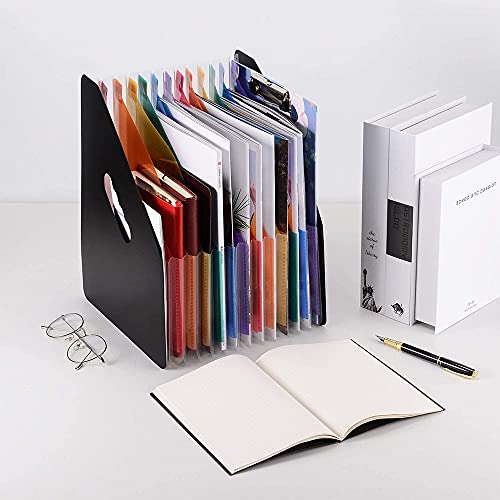 Raccoglitore Documenti, Raccoglitore Espandibile, Porta Documenti Espandibile, Fisarmonica Porta Documenti, Cartella Portadocumenti, per L'archiviazione di Cartelle e File di Archiviazione (Nero)