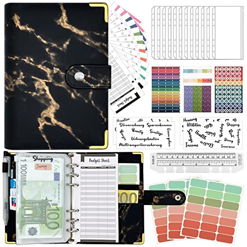 Design perfetto per rilegatura A6: questo set di planner tedesco è realizzato in resistente pelle PU e forte protezione angolare. Stabile e resistente agli strappi, una chiusura a scatto unica con pratica struttura interna, raccoglitore A6 per risparmiare denaro, è facile per riporre penne, carte d'identità, carte VIP, carte bancarie e passaporto, ecc. Il raccoglitore ad anelli A6 è perfetto per risparmiare denaro per fornire molto spazio per i viaggi o per avere budgeting mensile, cassa per la casa.