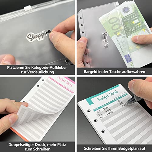 Raccoglitore Documenti, 34 Pezzi A6 Raccoglitori ad Anelli, Budget Binder con 12 Buste e Foglio di Bilancio di Spesa, Budget Planner Cash Stuffing Contanti Organizzatore Risparmio Denaro