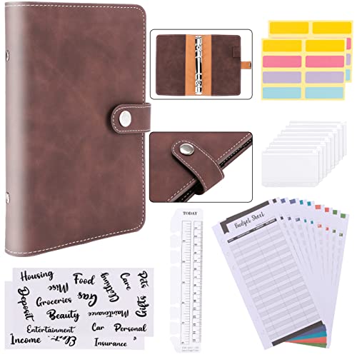 Raccoglitore Notebook A6 Acemall 26 PZ Raccoglitore per budget con buste con cerniera, 6 anelli, copertina in pelle sintetica PU, con fogli di budget, tasche per raccoglitori, etichetta, righello