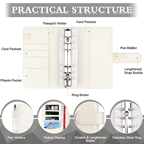 A6 Raccoglitore Notebook, Raccoglitore ad 6 Anelli in Pelle PU con 12 Trasparente Sacchetti Cerniera Compilabile per Budget di Contanti Organizzatore di Buste Risparmio di Denaro (Bianco)
