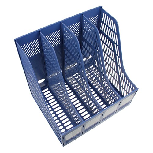 LY® Raccoglitore portadocumenti da scrivania in polipropilene, per ufficio, per formati A4, con 4 scomparti blu