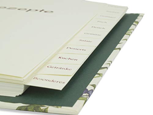 Raccoglitore per ricette in formato A5, raccoglitore ad anelli da 5 cm di larghezza in cartone robusto, libro di ricettario da scrivere, con 11 divisori e 50 fogli di ricette in formato A5, senza