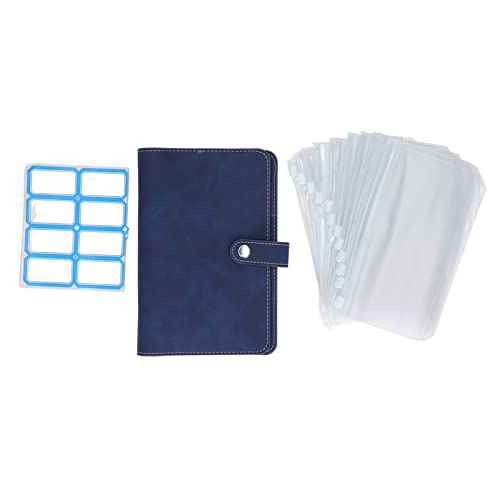 Raccoglitore per Taccuino in Pelle A6 PU, Riutilizzabile 6 Raccoglitore Ad Anelli con 12 Sacchetti con Cerniera per Carta di Riempimento A6 (Blu)