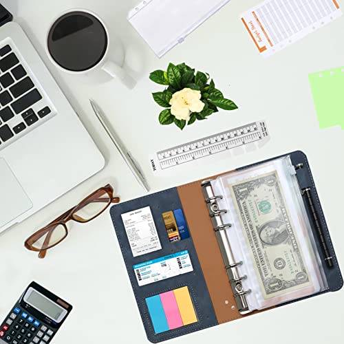 Raccoglitori ad Anelli A6, Binder Per Notebook In Pelle Pu Con 12 Trasparente Sacchetti Cerniera Compilabile 12 Cash Foglio Di Budget 5 Divisori Per Raccoglitori Colorati Etichetta Adesiva Righello