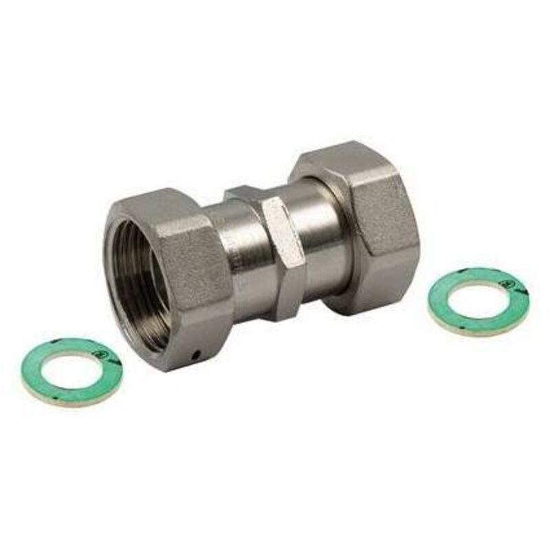 Raccordo diritto doppio nichelato con girello e guarnizione piana.(DianFlex)Misura: 1/2 x 1/2