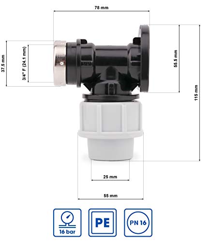 Adatto per l'uso con tubo di 20, 25 mm (diametro esterno) in MDPE / alchene solido ecc