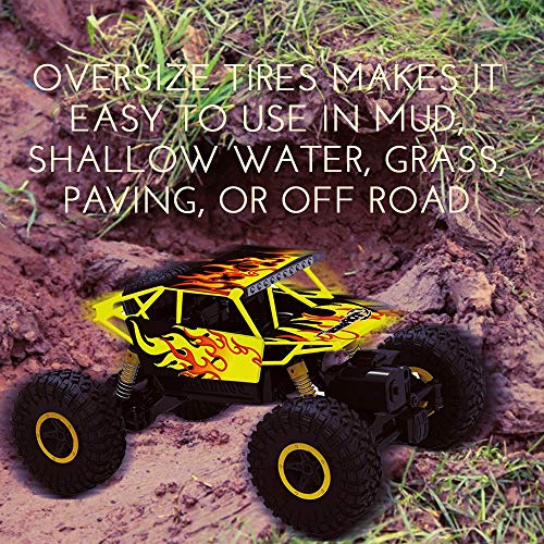 Offroad - Questo agile RC è il migliore per l'offroad. È realizzato con i migliori materiali durevoli e dotato di grandi pneumatici antiscivolo. Ha anche potenti ammortizzatori che consentono a questo Rock Crawler 4WD di impadronirsi di qualsiasi superficie, a qualsiasi velocità. Dotato di ingranaggi a bassa velocità per una maggiore sicurezza, il passeggino può facilmente strisciare su qualsiasi terreno o oggetto sia all'interno che all'esterno.