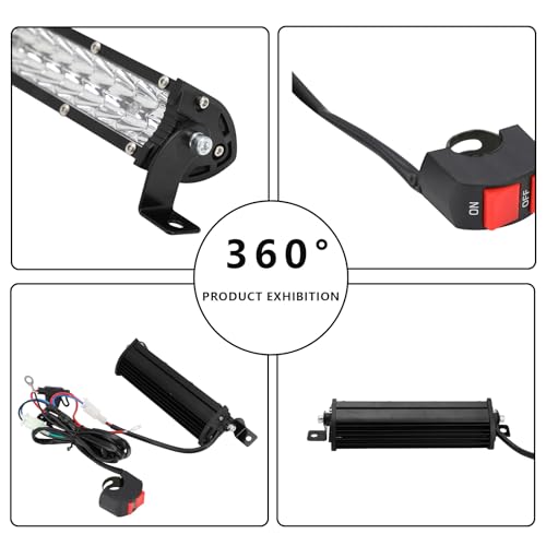 Accessori di installazione: gli accessori inclusi nella confezione aiutano la barra luminosa a essere montata saldamente sul manubrio della dirt bike. Collegare il cavo alla porta di alimentazione del faro per ottenere "plug and play".