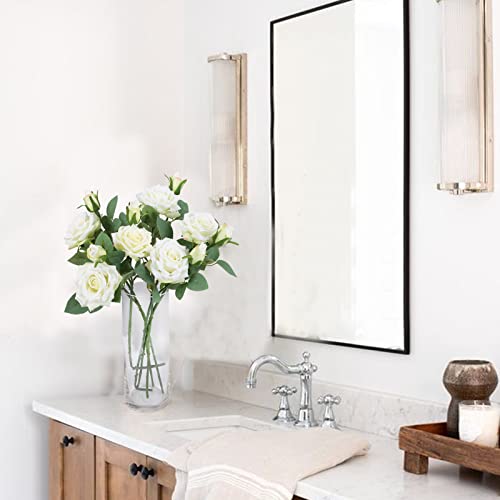 RADCANE 6 Pezzi Fiori Artificiali Rose Finte Bianco 45cm/17.7in Fiori Artificiali per Esterni Rosa Artificiali Bouquet di Rose Resistente ai Raggi UV per Casa Ufficio Giardino