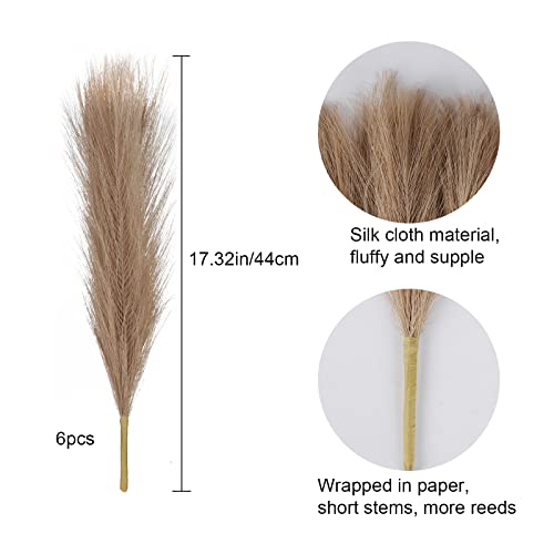 RADCANE 6 Pezzi Pampas Artificiale Piccola 44cm/17.32in Erba di Pampa Essiccata Marrone Pianta Finta Pampas Faux Pampas Erba Fiori Decorative Domestica Casa