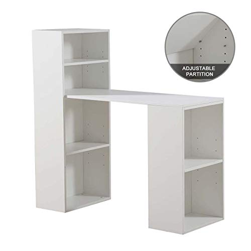 Radelldar Scrivania con Libreria 2 + 4 Scomparti Scrivania per Computer in Legno 110 x 45 x 110 cm Bianco