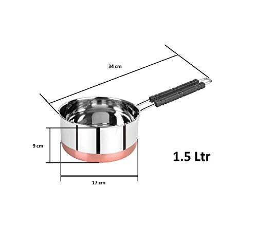 Radhna Designer - Padella per salse, con fondo in rame, in acciaio inox, per latte, teiera, tapeli/Patila/Bhagona, 1 set combinato: 2 litri di salsa di diametro 18,5 cm (acciaio inox)