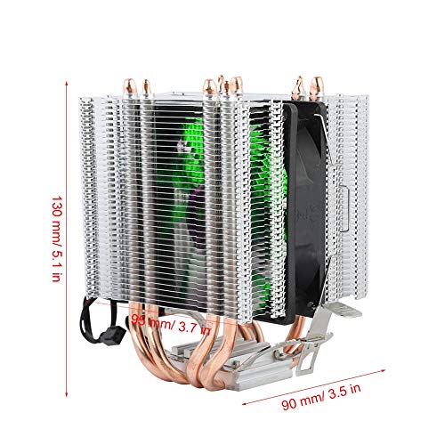 Radiatore della CPU, 4 dissipatore di Calore a Forma di U ad Alta efficienza a Basso consumo a 4 Tubi di Calore per radiatore della Ventola della CPU Intel LGA 1155/1156/1366(Verde)