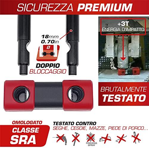 OMOLOGATO PER DIFENDERE LA TUA MOTO: La tua difesa contro i furti. Il RADIKAL RK75 è un bloccadisco per moto omologato CLASSE SRA realizzato interamente in acciaio speciale temprato Hi-Tech e con una forcella da 18mm. Testato con successo contro seghe, cesoie, mazze, piedi di porco e altri attacchi brutali in valutazioni di sicurezza approvate condotte presso laboratori indipendenti.
