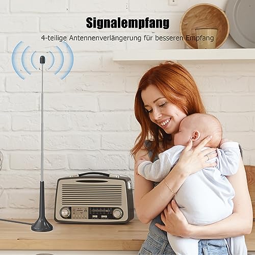 Gamma completa di canali DAB, grande antenna estensibile sia per radio FM che DAB. Ricezione migliorata al 100% per ricezione DAB e FM in aree di ricezione scarsa
