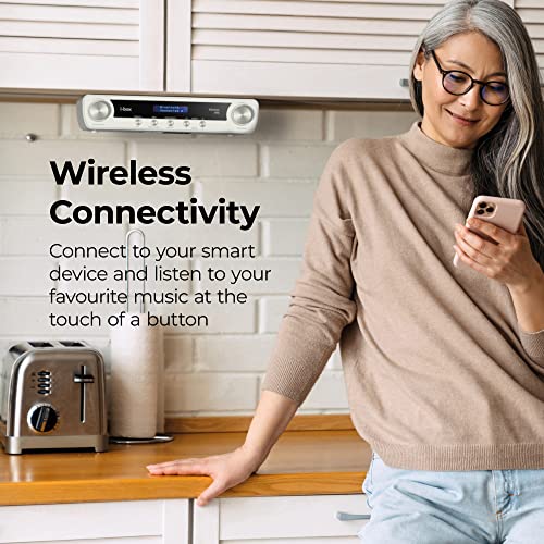 ✔️ Radio digitale DAB/DAB+ e FM: impara la nuova radio DAB da cucina dello specialista audio britannico i-box la nuova radio DAB elegante e facile da usare con Bluetooth, che offre opzioni di montaggio uniche sotto l'armadio. DAB+ offre un audio nitido e chiaro e cerca automaticamente tutte le stazioni radio disponibili visualizzate sul grande display LCD per sapere esattamente quale trasmettitore stai ascoltando.