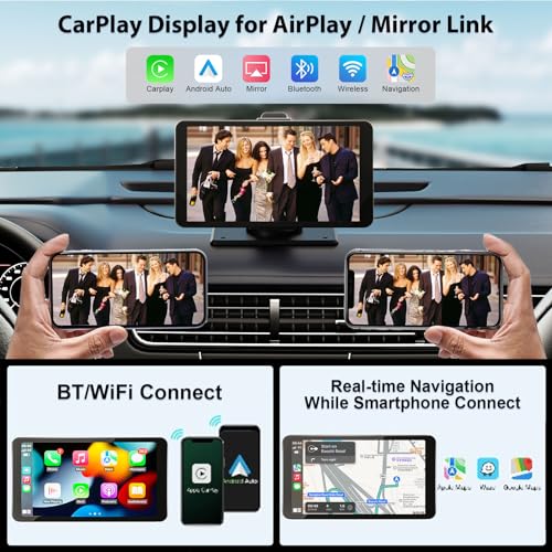Radio portatile per auto senza fili Carplay, 7-pollici Android Car Display con Mirrorlink .Airplay, IPS Touchscreen Car Play Screen Display per auto Moto Truck