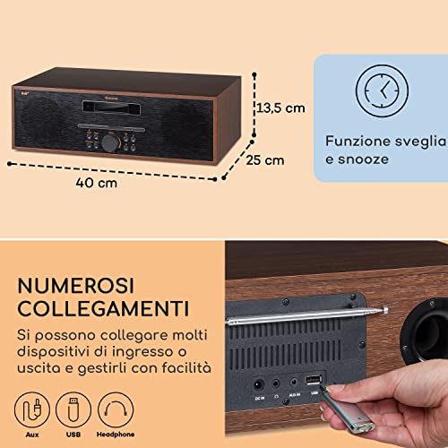 GODITI FINO A 14.000 STAZIONI: Questa radio Bluetooth dab è preimpostata con 14.000 stazioni per darti massima scelta su cosa ascoltare. Include lettore CD e può essere utilizzata come sveglia con timer e autospegnimento.
