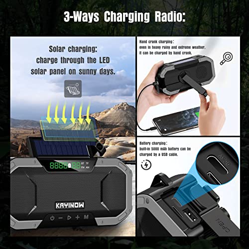 Radio portatile solare con batteria ricaricabile 5000mAh CestMall Radio Solare a Manovella con Funzione Altoparlante TF/Bluetooth, Mano Crank Radio Radio solare manovella radio portatile Allarme SOS