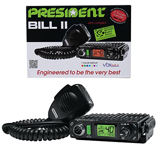 Radio CB President Bill II ASC, VOX, Roger Beep, Scan, 4W, 12V potenziato con filtri antirumore NB, ANL e Hi-Cut, Nero