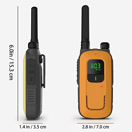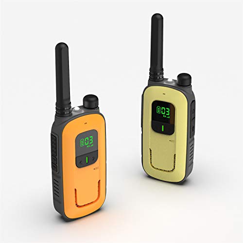 Radioddity Walkie Talkie PR-T3 Ricaricabile per Bambini da 3-12 Anni 16 Canali Ricetrasmittente PMR446 Senza Licenza per la Famiglia, Ricarica Micro-USB (Arancione & Giallo)